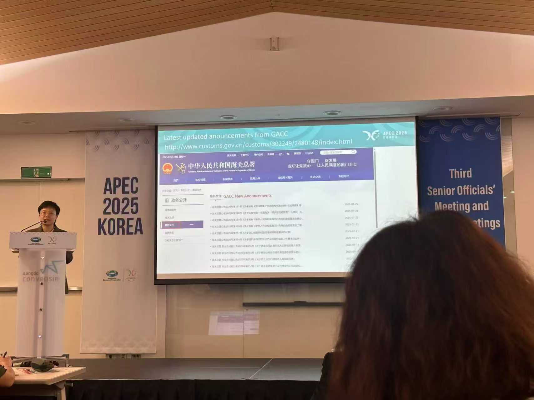 دُعينا لحضور منتدى التعاون الاقتصادي لآسيا والمحيط الهادئ (APEC 2025) في كوريا، وهو الاجتماع الرسمي رفيع المستوى الثالث لمنتدى التعاون الاقتصادي لآسيا والمحيط الهادئ (APEC). شارك مسؤولون رفيعو المستوى من مختلف الدول في تبادل شامل للآراء حول آليات الوصول إلى الأسواق، والحواجز التجارية، ومتطلبات السياسات، والآليات الإجرائية، ومخاطر التجارة ونقاط الرقابة الرئيسية، واستراتيجيات امتثال الشركات، وأرباح السوق والأزمات، وغيرها من المواضيع. شارك ممثلون رسميون من مختلف الدول في تبادل مباشر وفعال لأفكارهم حول "أفكاري، متطلباتي؛ أفكاركم، متطلباتكم"، موضحين بذلك آليات التفكير في السياسات وأساليب تلبية المتطلبات. ساعد هذا الشركات على تحقيق الامتثال المبكر، مما مكّنها من الحد من المخاطر وإجراء معاملات فعّالة في بيئة أعمال "يُسهّل فيها الامتثال الصادق الامتثال، بينما يُعاقَب على الغش والخروج على القانون".